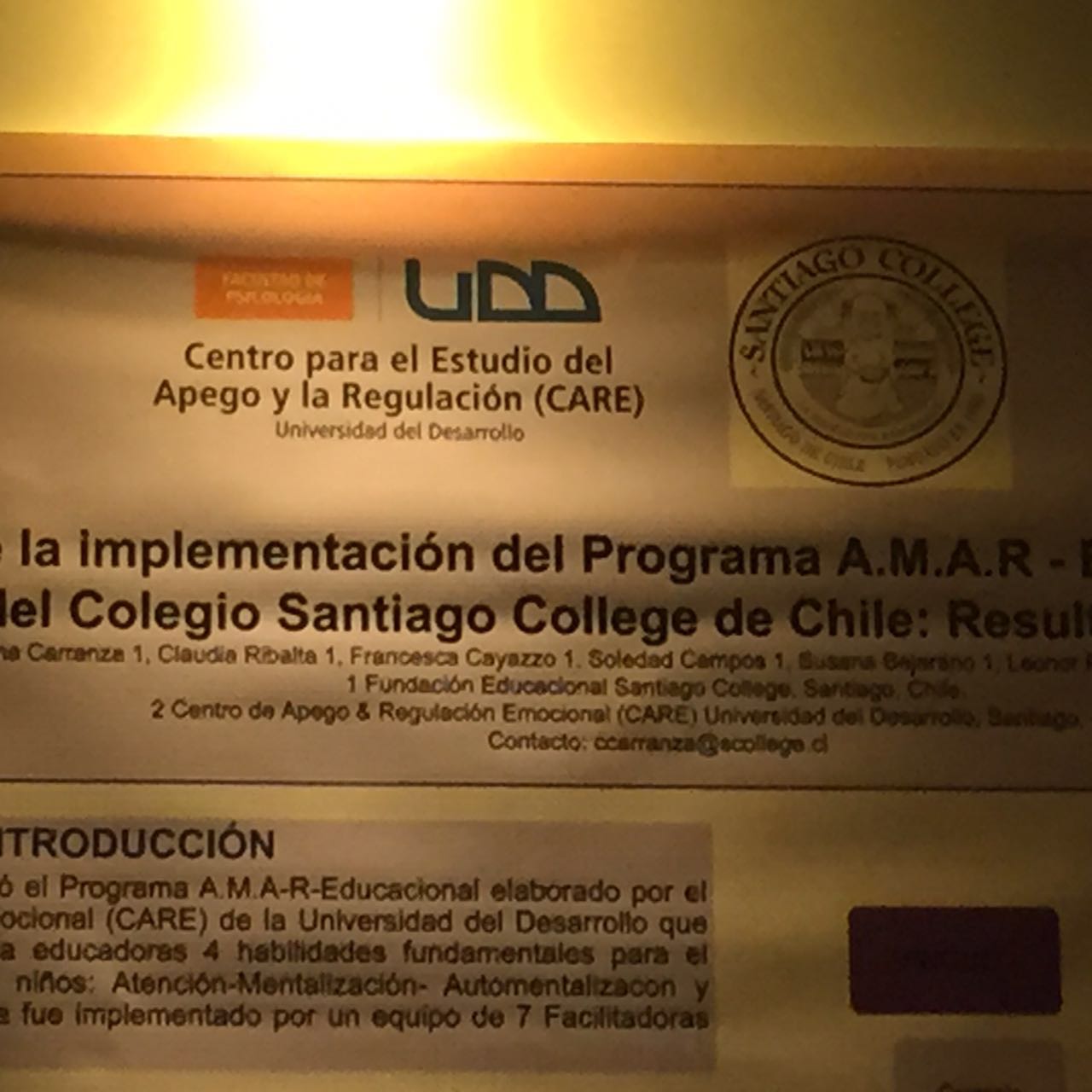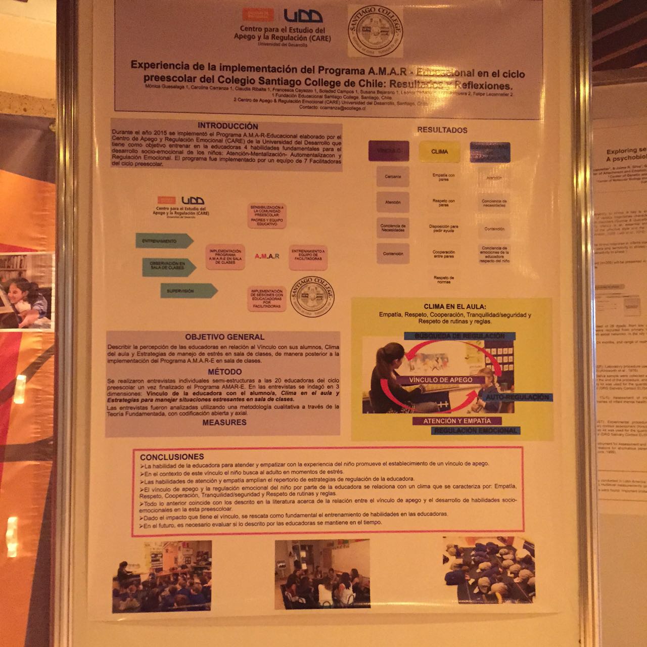 También asistieron Carolina Carranza y Mónica Gueselaga, psicólogas del Santiago Collage quienes presentaron un poster con resultados cualitativos del Programa de Intervención A.M.A.R.- Educacional que se está implementando en el ciclo presescolar del colegio.
