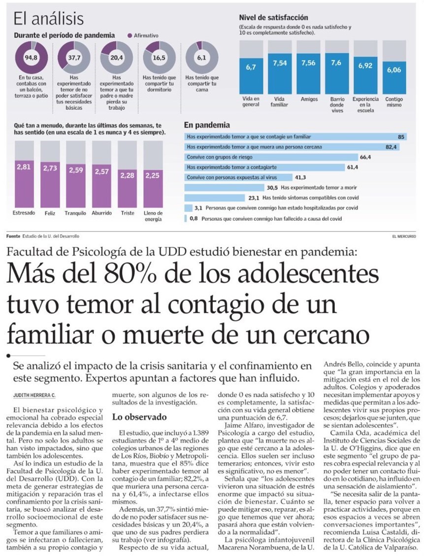 Diario el Mercurio, Radio Cooperativa y diversos medios nacionales destacan los resultados del estudio CEBCS: «Efectos de la Cuarentena Covid-19 en el Bienestar Adolescente», liderado por el Dr. Jaime Alfaro