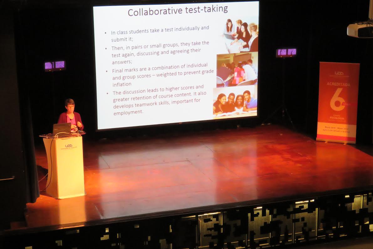 Por su parte, la Doctora Susan Bloxham, docente e investigadora de la Facultad de Educación de la Universidad de Cumbria, Inglaterra, y Directora del ‘Centre for Development of Learning and Teaching’ de la misma casa de estudios, enfocó su presentación en la enseñanza a grupos grandes de alumnos.