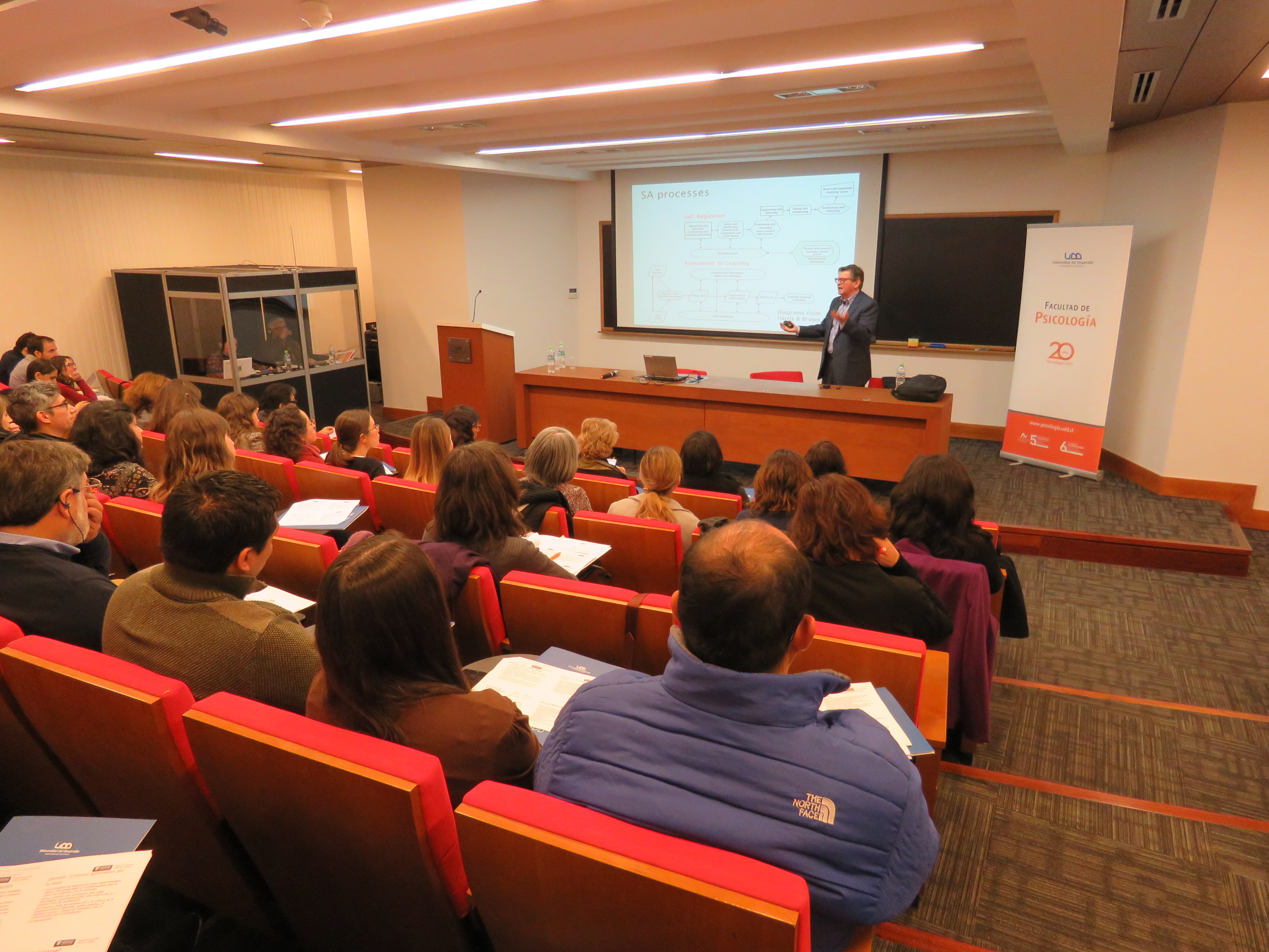Luego, el viernes 8 de junio, fue el turno de la sede UDD en Santiago. Cerca de 65 personas llegaron hasta la casa de estudios para escuchar las exposiciones del Dr. Gavin Brown y la Dra. Daniela Bruna. En este caso, la bienvenida fue oficiada por la Directora de Investigación de la U. del Desarrollo, sra. Denisse Saint- Jean, quien destacó la importancia de fortalecer los campos de investigación en el área y de potenciar la calidad de los resultados, en pro de facilitar el desempeño del estudiante en el aula. Por otra parte, la Dra. Javiera Mena, directora del Magíster en Psicología Educacional (MPE) recalcó la importancia de este ciclo de seminarios que la Facultad viene realizando desde el 2015.