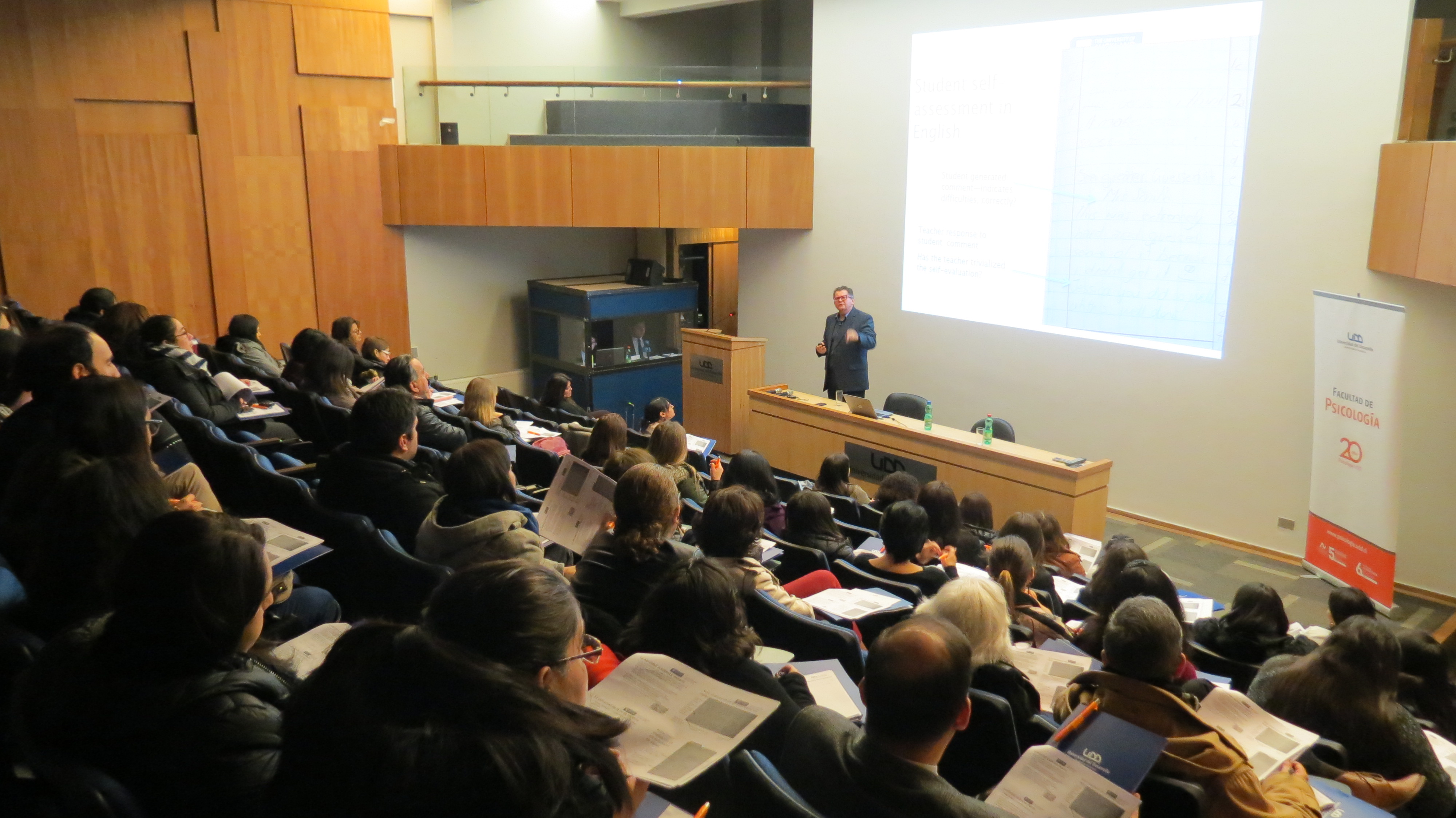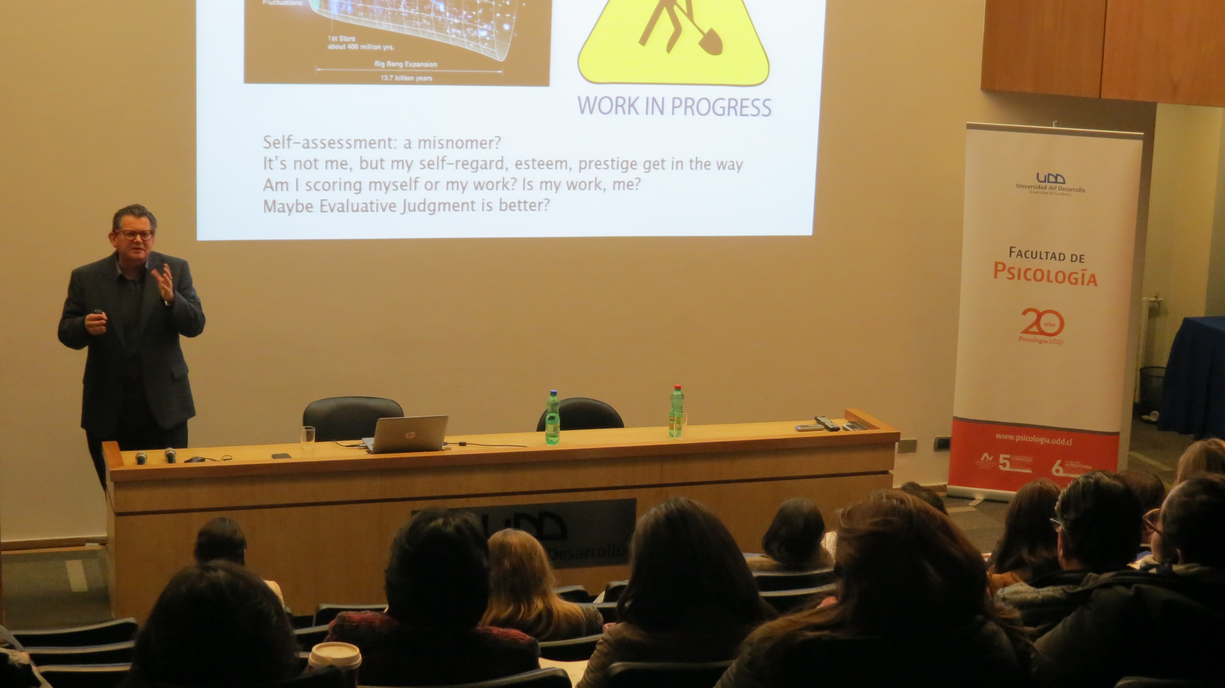El Dr. Gavin Brown de la Universidad de Auckland, Nueva Zelandia, dio el vamos a la jornada de exposiciones con su presentación “Auto-Evaluación”, referida al proceso que requiere que los estudiantes evalúen y monitoreen su propio desempeño en relación con determinados criterios y estándares.