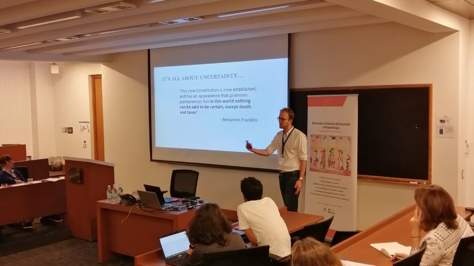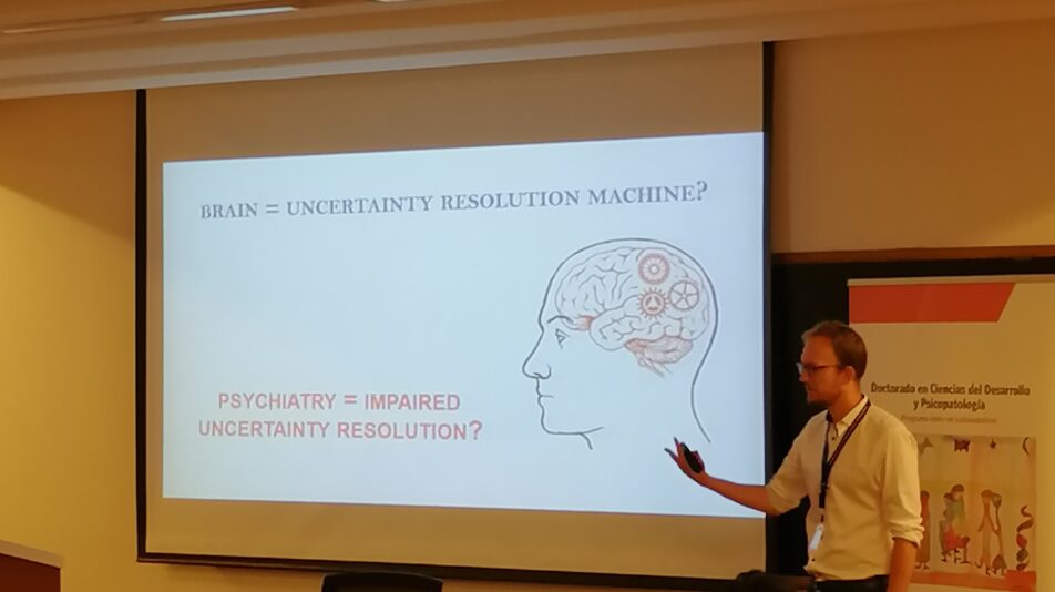 Luego, fue el turno del invitado internacional Tobías Hauser, profesor asociado a The Max Planck UCL Centre for Computational Psychiatry and Ageing Research, and the Wellcome Centre for Human Neuroimaging. El Dr. Hauser presentó: “The Role of indecisiveness and metacognition in Psychiatry”. El investigador indagó en rasgos característicos de individuos con Trastorno Obsesivo Compulsivo: Un déficit de la capacidad metacognitiva y un comportamiento indeciso.