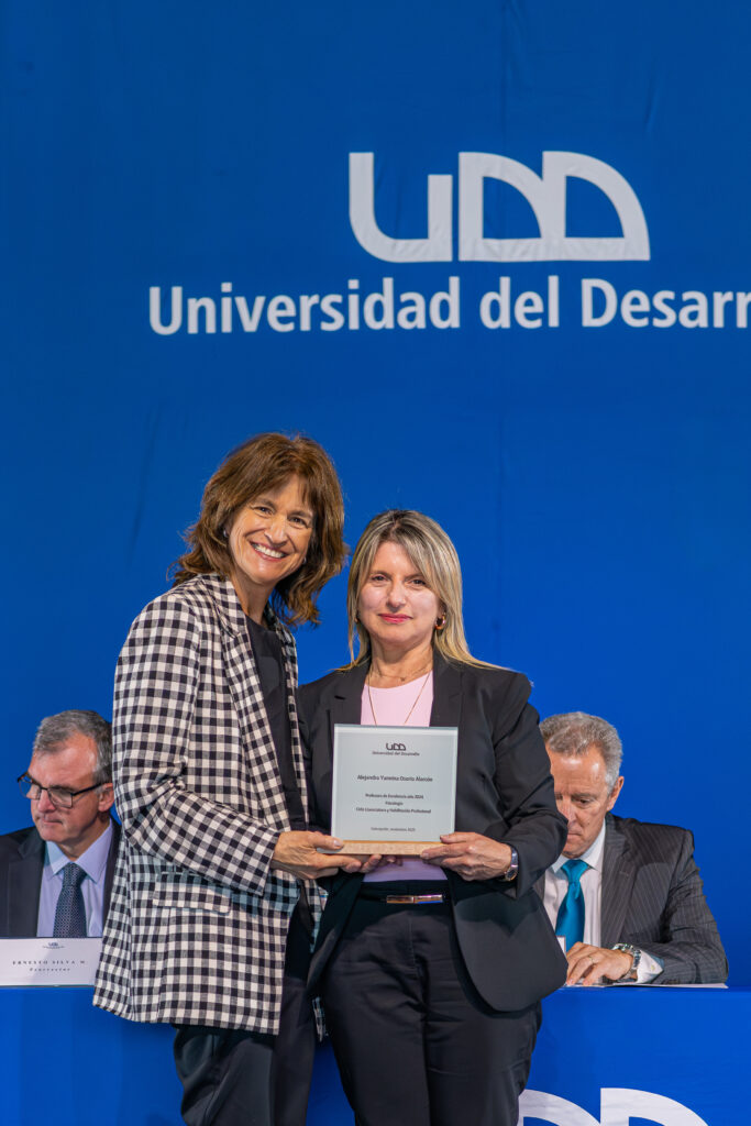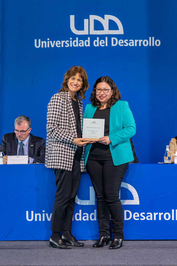 En este contexto, Alejandra Osorio Alarcón agradeció el reconocimiento y afirmó: “Recibir el Premio Docente de Excelencia de la UDD es uno de los honores más significativos de mi carrera, pues reafirma mi profundo compromiso con la educación y su misión transformadora. Para mí, la docencia es un acto ético y de responsabilidad, donde cada clase es una oportunidad para sembrar pensamiento crítico, fomentar la curiosidad y acompañar a mis estudiantes. Este reconocimiento no es solo un logro individual, sino el reflejo de una Facultad y una comunidad que cree en el poder de la educación para transformar realidades”.
