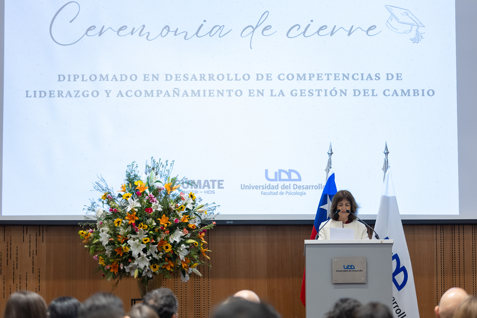 La Facultad de Psicología de la Universidad del Desarrollo, en colaboración con el Hospital del Salvador, el Instituto Nacional de Geriatría y el Servicio de Salud Metropolitano Oriente (SSMO), realizó la ceremonia de titulación de la primera versión del Diplomado en Desarrollo de Competencias de Liderazgo y Acompañamiento en la Gestión del Cambio.