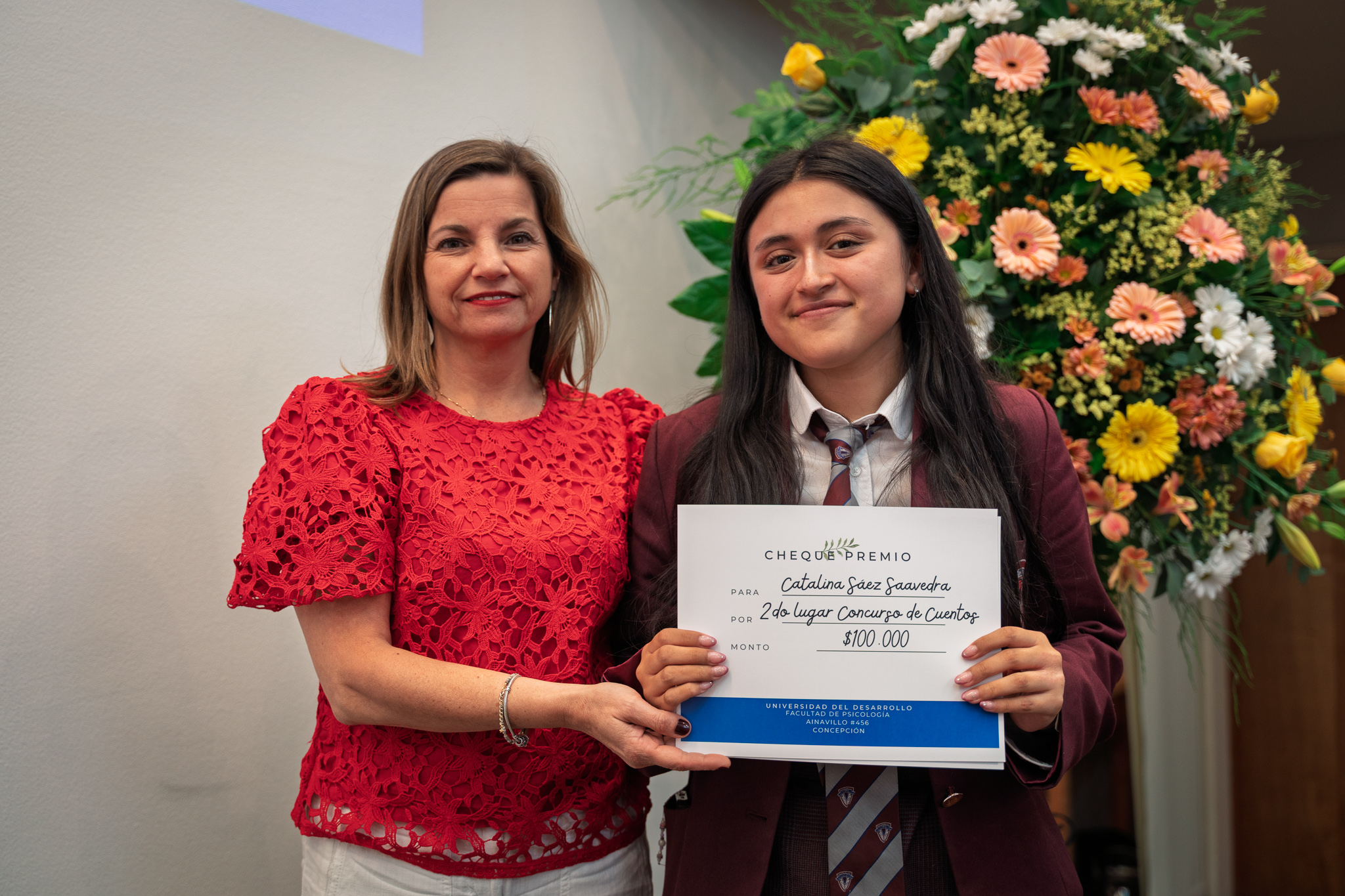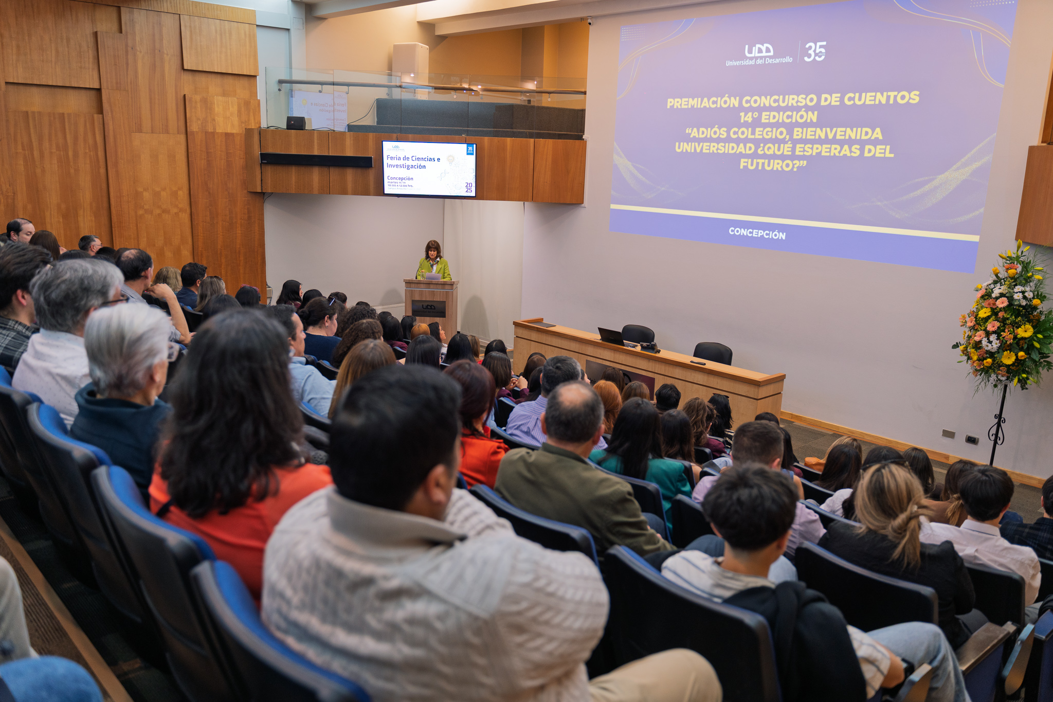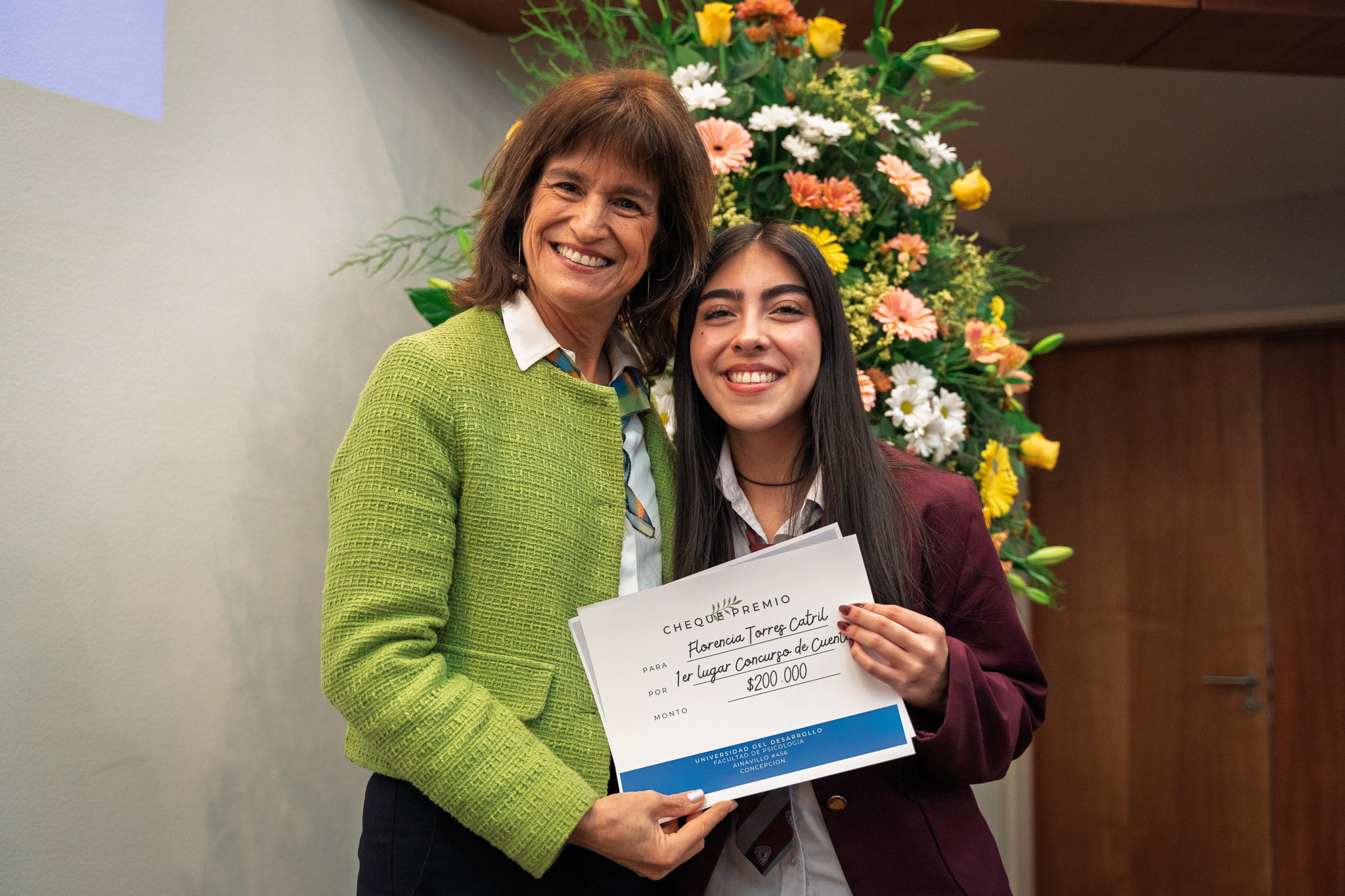 La Facultad de Psicología de la Universidad del Desarrollo, sede Concepción, realizó la ceremonia de premiación del concurso de cuentos “Adiós Colegio, Bienvenida Universidad: ¿Qué esperas del futuro?”, una iniciativa que invitó a estudiantes de cuarto medio de las regiones del Biobío y Ñuble a reflexionar sobre el paso desde la enseñanza escolar hacia la educación superior.