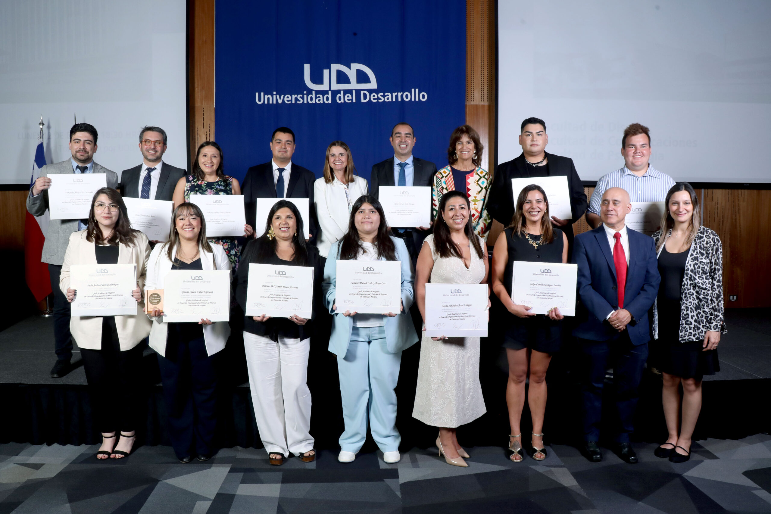 La Universidad del Desarrollo llevó a cabo la Ceremonia de Graduación de sus programas de postgrado el pasado lunes 12 de enero en el Aula Magna del campus Rector Ernesto Silva Bafalluy (RESB), en Las Condes. En esta instancia académica, la Facultad de Psicología reconoció a los profesionales que completaron satisfactoriamente sus planes de estudio en el Magíster en Psicología Educacional (MPE) y el Magíster en Desarrollo Organizacional y Dirección de Personas (MDO).