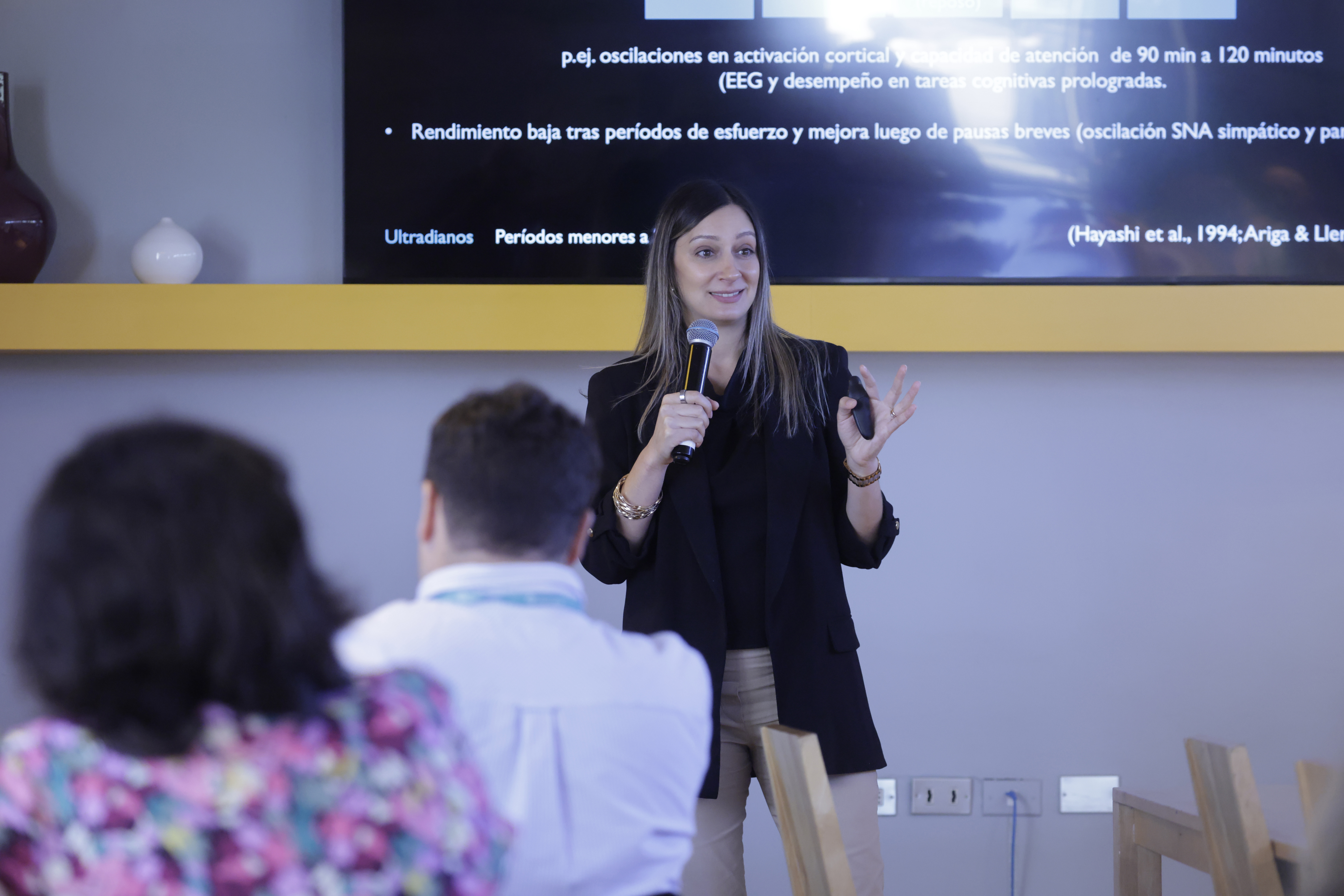 Durante la jornada expusieron el Dr. Jaime Silva, director del Instituto de Bienestar Socioemocional (IBEM) abordando los estilos socioemocionales del liderazgo y su impacto en el cambio organizacional, y la Dra. Marianne Cottin, quien presentó una mirada centrada en la regulación de la energía, la prevención del burnout y el bienestar sostenible. Las presentaciones dieron paso a espacios de conversación entre los asistentes.